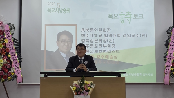 이날 시 낭송회에서 강대식 시인(충북문인협회장)이 2022년 출간한 시집 ‘별목련’ 등 강 시인의 시의 세계에 대해 강연했다.