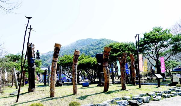 벚나무 가지가 터널을 이뤄 환상적인 꽃비가 내리는 장곡사 벚꽃길 끝자락 장승공원에서 매년 열리는 칠갑산 장승문화축제는 장승의 전통을 계승하고 현대적으로 재해석한 차별화된 경험을 준다.