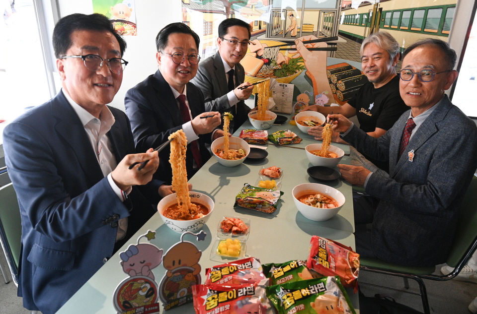 9일 대전 동구 소제동 후루룩 대전에서 꿈돌이네 라면가게 팝업스토어 개관행사가 열려 참석한 내빈들이 꿈돌이 라면을 시식하고 있다. 김주형 기자 kjh2667_@cctoday.co.kr