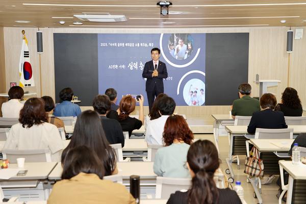 ‘언제나 책봄, 지속 가능한 도서관!’을 주제로 한 이날 워크숍은 윤건영 교육감의 ‘AI전환시대! 실력 충북교육’이라는 주제의 특강과 인성시민과 인성독서팀장의 ‘교육문화복합공간으로서 교육도서관의 역할’ 정책 설명으로 진행됐다.