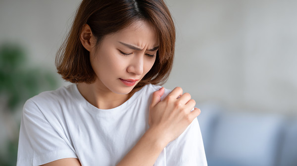 회전근개 파열의 주요 증상은 완전 파열의 경우 실제로 드는 힘이 떨어져 팔을 들어 올리지 못할 수 있다.