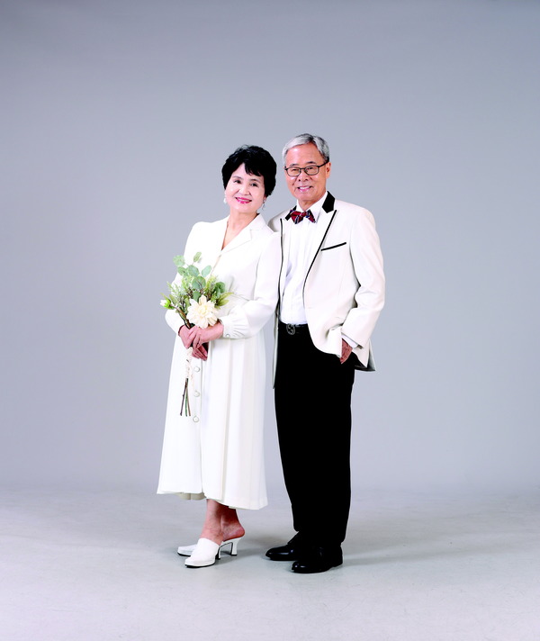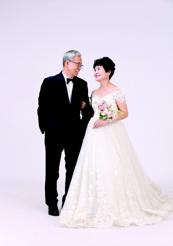 인터뷰가 끝나고 부부는 2층 스튜디오로 올라가 의상을 골랐다. 화려한 의상들을 보다 기자가 ‘웨딩드레스를 입고 찍어보시는 건 어떠냐’고 제안하자, 장미화 씨는 쑥스러워하다 이내 드레스를 골랐다. 젊은 시절을 지나 노년으로 접어든 부부가 결혼식 때처럼 턱시도와 드레스를 입고 카메라 앞에 섰다. 한치구 씨에게 소감을 묻자 “리마인드 웨딩하는 느낌이 든다”며 활짝 웃었다. 그의 눈에는 젊은 시절 처음 만났던 ‘곱고 순한’ 아내의 모습이 비치고 있었다.