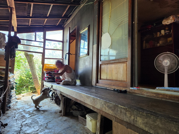 "요즘 보기 드문 슬레이트집으로 찜통 같죠." 집은 슬레이트 단독주택 건물로 문은 비닐로 막아놨다. 이 곳에 김 옹은 선풍기만 틀어 놓은 채 불도 켜지 않고 김 복지사를 반겼다. 집 안은 비닐하우스를 연상하게 할 정도로 바깥보다 더웠다.