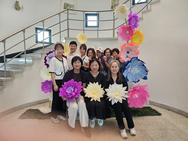 예산읍 주민자치 위원들과 함께 자이언트플라워 공예를 배우고, 그 결과물을 복지회관 입구에 아름답게 장식해 포토존을 만들었으며 화려하게 장식했다.