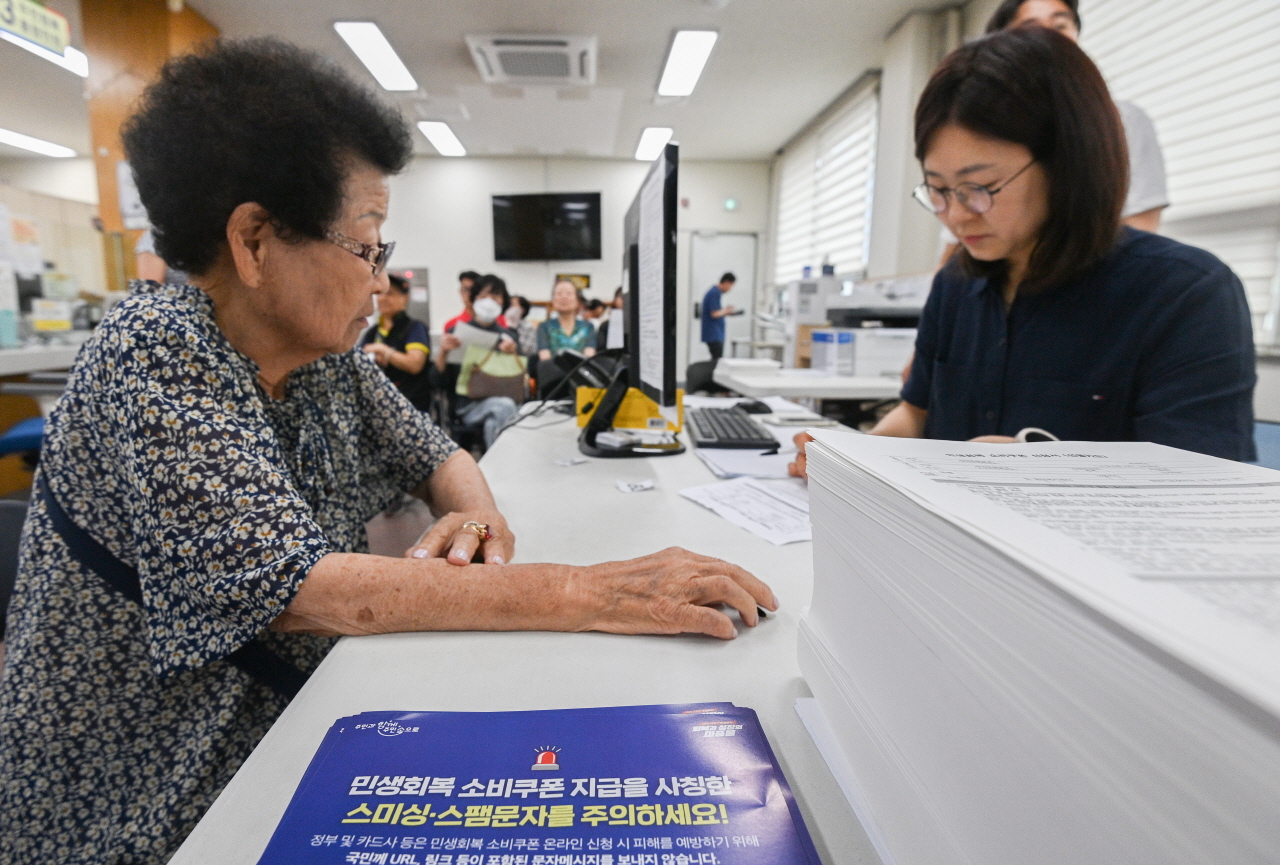 민생회복 소비쿠폰 신청이 시작된 21일 대전 대덕구 법2동 행정복지센터를 찾은 시민들이 소비쿠폰을 신청 하고 있다. 김주형 기자 kjh2667_@cctoday.co.kr