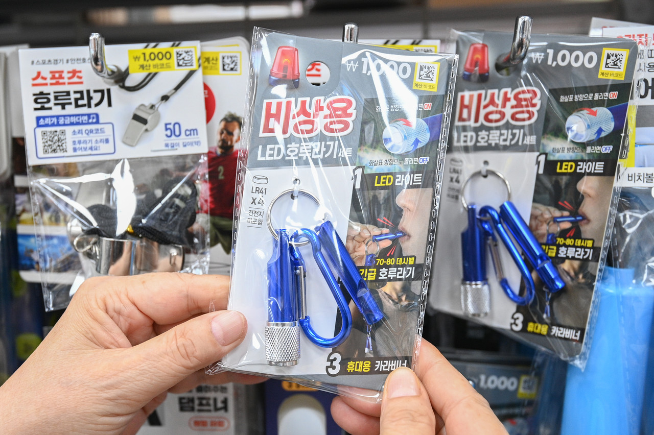 [충청투데이 김주형 기자] 최근 대전 서구 괴정동 인근에서 벌어진 흉기 살인 사건 등 개인 안전에 대한 우려가 커지고 있는 가운데 30일 대전 중구의 한 종합생활용품점에서 시민이 호신용 호루라기를 고르고 있다. 김주형 기자 kjh2667_@cctoday.co.kr