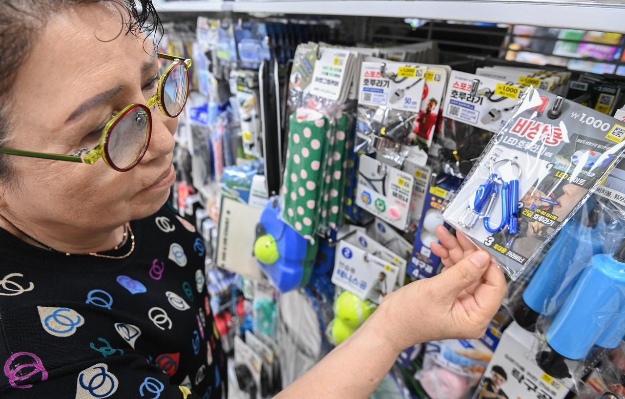최근 대전 서구 괴정동 인근에서 벌어진 흉기 살인 사건 등 개인 안전에 대한 우려가 커지고 있는 가운데 30일 대전 중구의 한 종합생활용품점에서 시민이 호신용 호루라기를 고르고 있다. 김주형 기자 kjh2667_@cctoday.co.kr