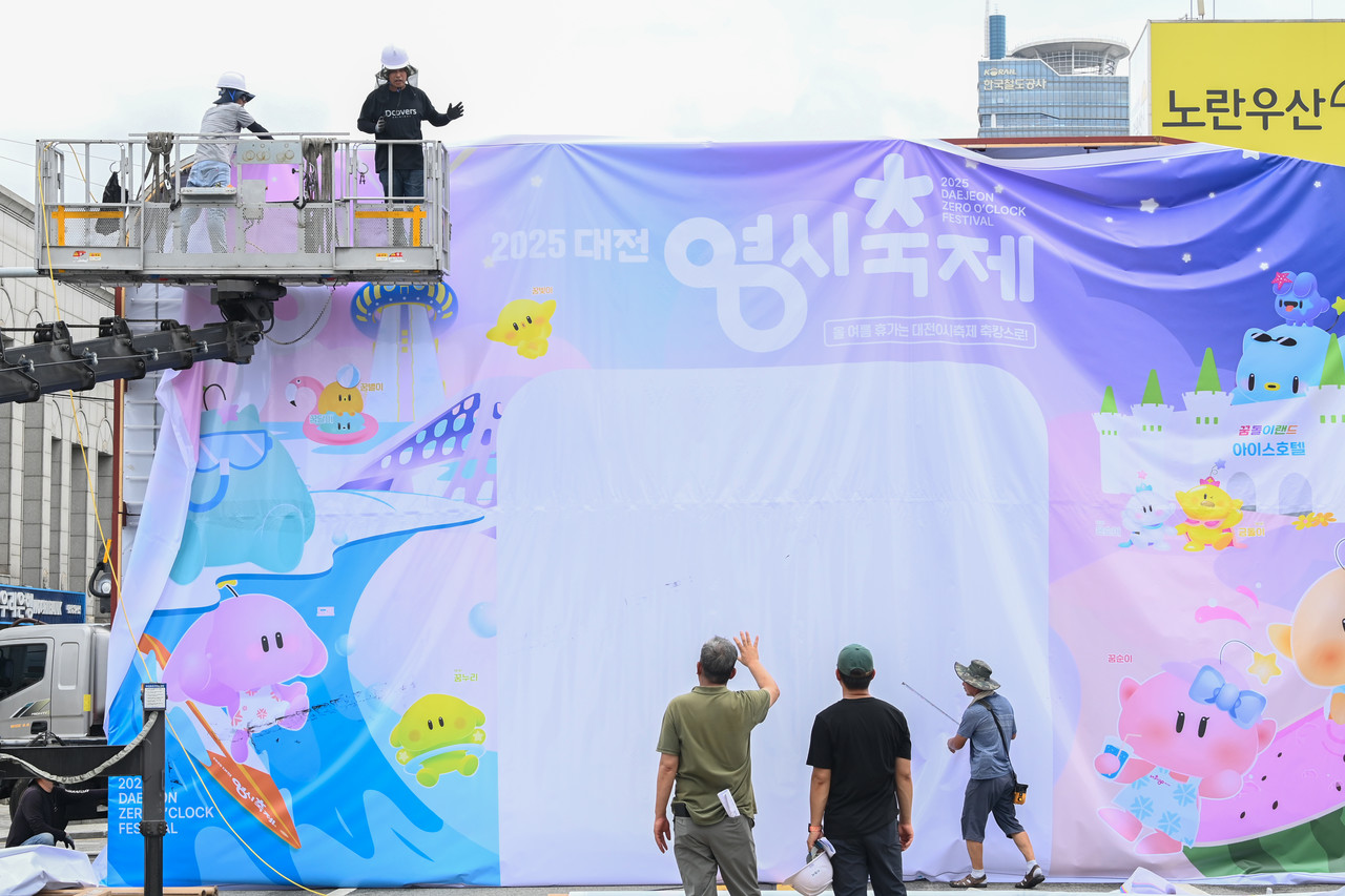 '2025 대전 0시 축제' 개막을 이틀 앞둔 6일 대전 중구 중앙로에서 축제 준비를 위해 교통을 통제하고 구조물을 설치하고 있다. 0시 축제 기간을 전후한 6일 오전 5시부터 17일 24시까지 중앙로와 대종로 일원 교통이 통제된다. 김주형 기자 kjh2667_@cctoday.co.kr