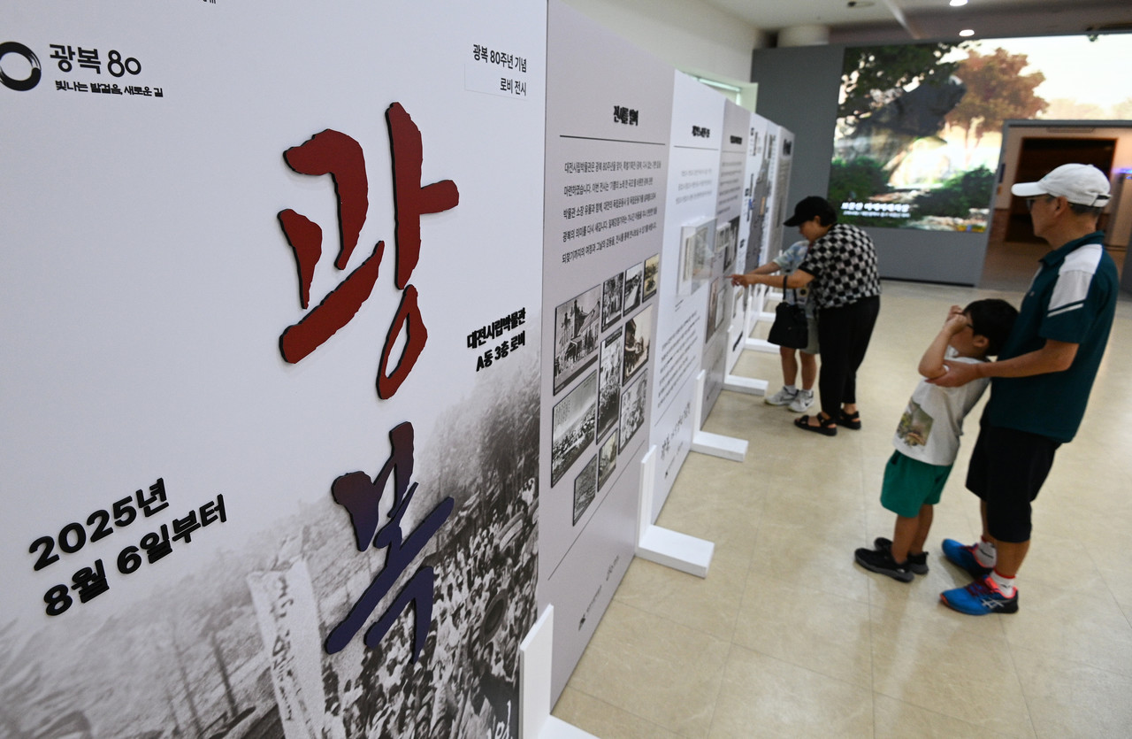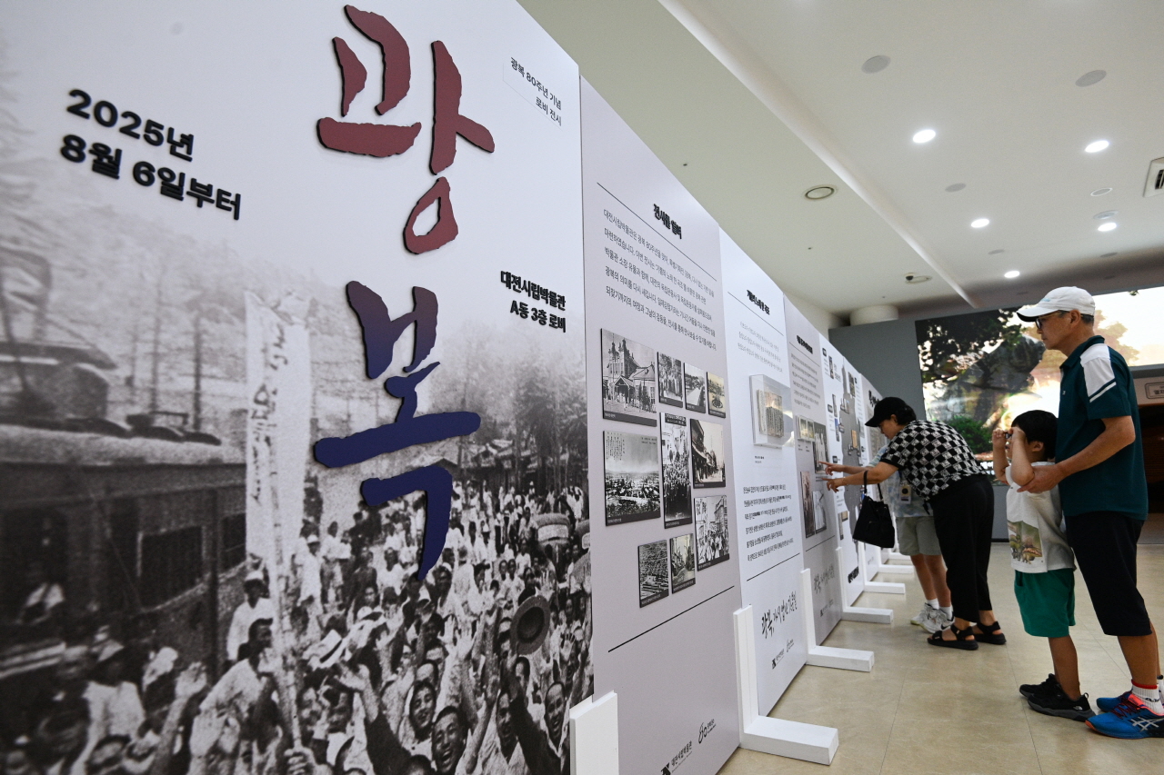 [충청투데이 김주형 기자] 6일 대전시립미술관을 찾은 가족들이 광복 80주년 기념 특별전 '광복, 다시 없는 기쁜 일'을 관람하며 대전의 독립운동가들 이름을 되새기고 있다. 김주형 기자 kjh2667_@cctoday.co.kr