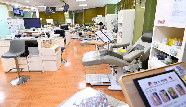 [충청투데이 김주형 기자] 여름철 휴가와 방학, 폭염 등으로 헌혈 참여자 수가 줄어든 가운데 7일 대전 유성구 헌혈의집 노은역 센터가 한산한 모습을 보이고 있다. 김주형 기자 kjh2667_@cctoday.co.kr