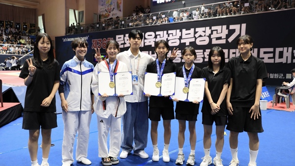 지난달 30일부터 이달 7일까지 전북 무주 태권도원 T1경기장에서 열린 이번 대회에서 충북체육중 태권도부는 핀급 신효원(1년), 플라이급 김유라(1년), 페더급 유서린(2년)이 각각 체급별 우승을 차지했다. 또 유아린은 라이트웰터급에서 2위에 올랐다.