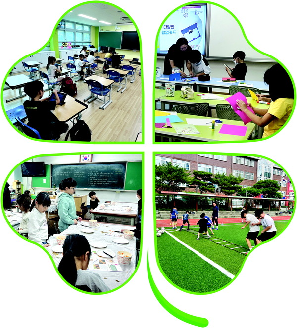 선택형 돌봄 프로그램은 여름방학 기간에도 오전 8시 30분부터 운영된다. 보드게임, 놀이한자, 우쿨렐레, 뉴스포츠, 사물놀이, 놀이미술, 놀이체스, 놀이코딩 등 총 8개 부서가 하루 3회 무상 특기적성 수업으로 진행돼 돌봄의 질을 한층 높이고 있다. 아이들은 방학 중에도 즐겁고 의미 있는 시간을 보내며 지적·정서적 성장을 이어가고 있다. 다양한 자체 프로그램을 운영함으로써 학부모의 사교육비 부담을 경감하고, 학생들이 안전하고 의미 있게 방과 후 시간과 여름방학을 보낼 수 있는 여건을 마련하고 있다. 3~6학년 학생을 위한 연계형 돌봄 교실도 운영 중이다. 선택형 교육 프로그램에 참여하는 학생들이 틈새 시간 동안 안전하게 머물 수 있도록 배려하고 있다. 이처럼 대전둔산초의 늘봄학교는 단순한 돌봄을 넘어, 교육·돌봄·성장이 유기적으로 연결된 미래형 공교육 모델로 자리매김하고 있다.