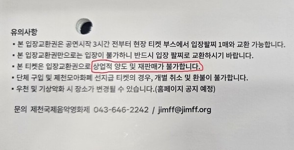 앞서 20회 영화제 때에는 공연 도중 ‘폭죽 사고’가 났던 ‘원썸머나잇’ 티켓을 위주로 5000원에서 1만원가량 싼 가격에 지역에서 거래가 이뤄졌었다.