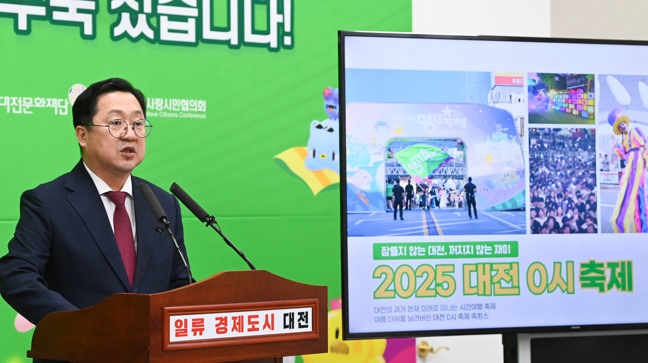 [충청투데이 김주형 기자] 이장우 대전시장이 21일 대전시청 브리핑룸에서 지난 16일 폐막한 ‘2025 대전 0시 축제’ 결과 브리핑을 하고 있다. 김주형 기자 kjh2667_@cctoday.co.kr