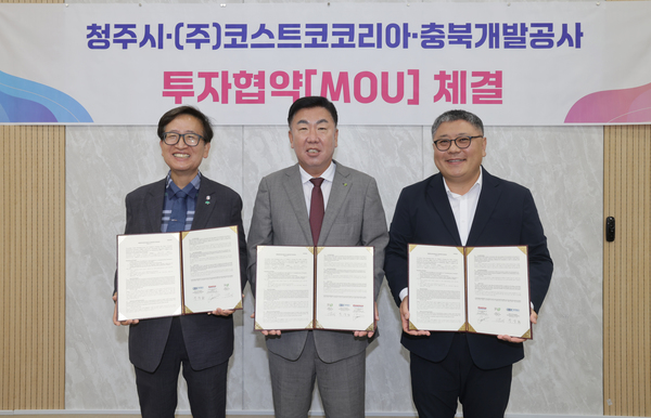 청주시는 2일 임시청사 직지실에서 ㈜코스트코코리아, 충북개발공사와 프리미엄 유통시설 입점을 위한 3자 간 투자협약(MOU)을 체결했다.