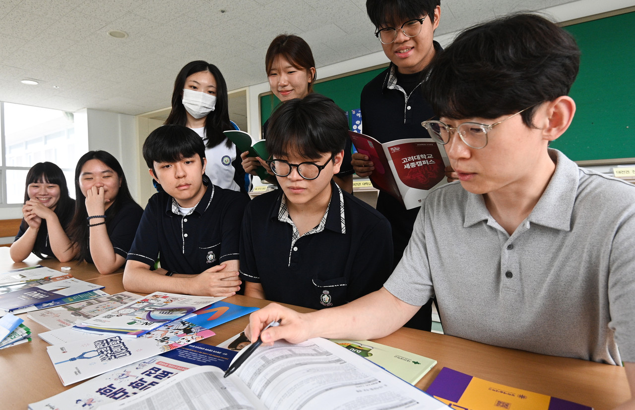 2026학년도 수시모집 원서접수가 시작된 8일 대전 서구 괴정고등학교에서 교사와 학생들이 입시상담을 하고 있다. 김주형 기자 kjh2667_@cctoday.co.kr