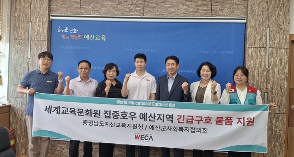 세계교육문화원(방영민 본부장)이 예산군사회복지협의회(회장 정낙규)에 수해복구 지원성금 및 물품을 후원했다.