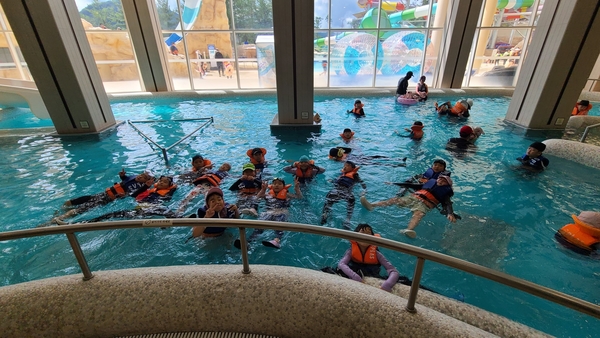 홍동초등학교 전교생은 지난 8월 29일 예산군 덕산면에 있는 한 워터파크를 방문했다.