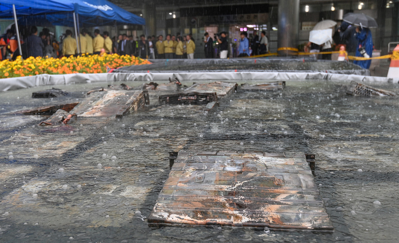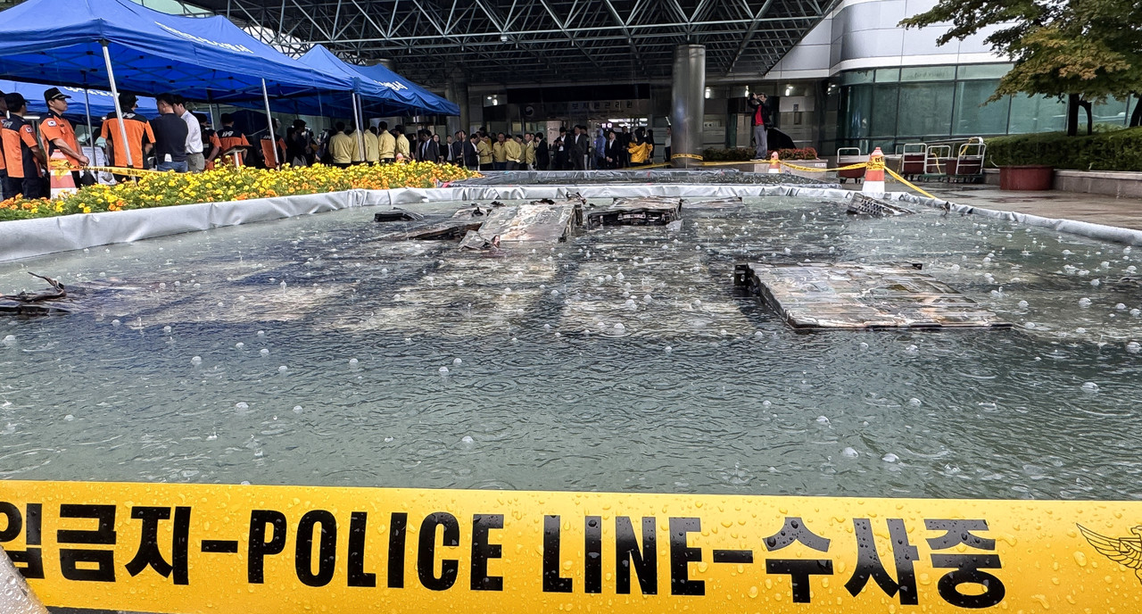 28일 화재가 발생한 대전 유성구 국가정보자원관리원에서 국립과학수사연구원 관계자들이 외부 침수조에 냉각작업 중인 리튬이온 배터리를 살펴보고 있다. 김주형 기자 kjh2667_@cctoday.co.k