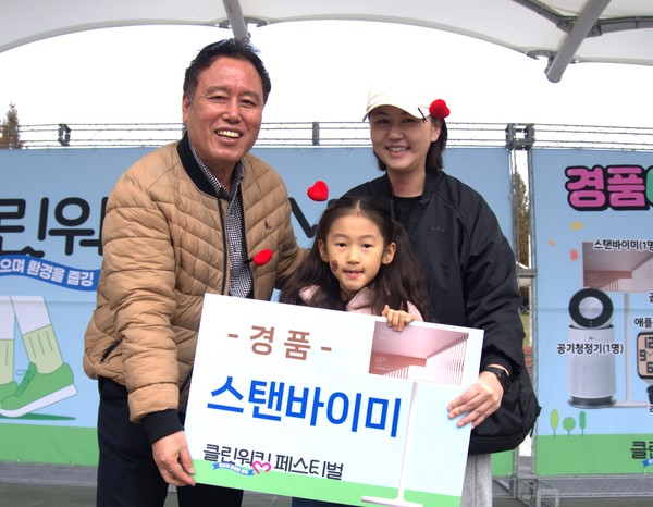 [충청투데이 강준식 기자] 8일 열린 ‘2025 클린워킹 페스티벌’ 참가자들의 관심이 집중된 경품 추첨 행사에서 단연 화제였던 1등 상품 ‘LG스탠바이미’는 청주시 청원구 오창읍에서 온 이지영(41) 씨에게 돌아갔다.