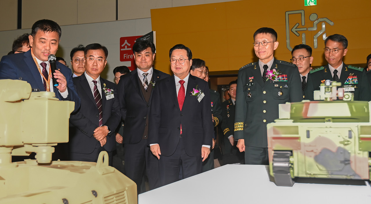 [충청투데이 김주형 기자] 11일 대전컨벤션센터에서 ‘국제 육군 M&S 학술 컨퍼런스 및 전시회(IAMSEC) 2025’가 열려 이장우 대전시장과 김규하 육군참모총장을 비롯한 참석한 내빈들이 전시를 참관하고 있다. 김주형 기자 kjh2667_@cctoday.co.kr