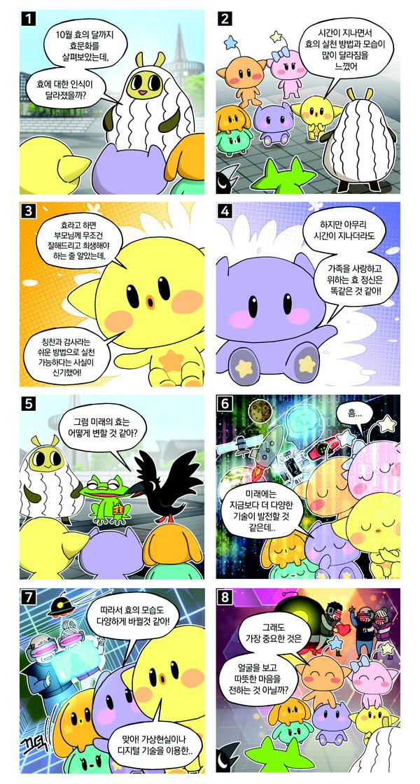 효는 오랫동안 부모에게 드려야 할 덕목으로 여겨져 왔지만 요즘은 ‘마음을 다해 돌보는 태도’라는 본래의 의미가 관계 전반으로 확장되고 있다.